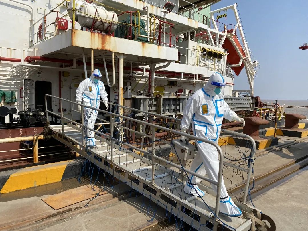 鹽城海岸線長達(dá)582公里,占江蘇省海岸線總長度比重高達(dá)56%,鹽城港共有“一港四區(qū)”,即大豐港區(qū)、濱海港區(qū)、射陽港區(qū)和響水港區(qū),點多面廣。有一群人默默在這些口岸間來回穿梭,對入境船舶實施登臨檢疫,筑牢口岸檢疫防線,他們就是鹽城海關(guān)疫情防控水運專班的成員。