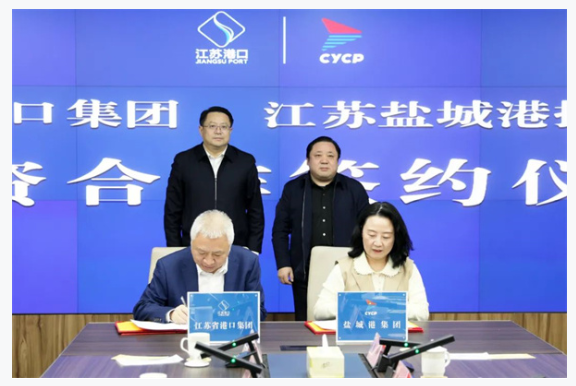 新華報業網訊 2月15日,江蘇省港口集團、江蘇鹽城港控股集團投資合作協議簽約儀式成功舉行。江蘇省港口集團黨委書記、董事長陳明,鹽城港集團黨委書記、董事長周正雄出席活動并鑒簽。江蘇省港口集團黨委委員、副總經理唐洪生,江蘇省港口集團總工程師、企業發展部總經理朱從富,鹽城港集團黨委副書記、董事、總經理陸帥,鹽城港集團領導班子成員、副總信息師等參加。集團副總經理袁欣代表集團與江蘇省港口集團簽訂協議。
