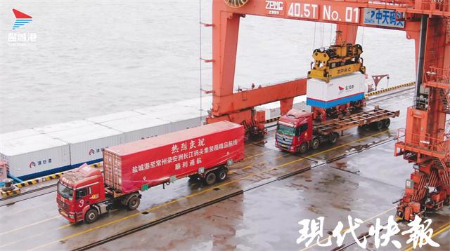 現(xiàn)代快報訊(通訊員 蔡宏立 記者 王菲)4 月 23 日,隨著一聲汽笛拉響,鹽城港"大港集 002 "號滿載著 36TEU 集裝箱緩緩靠泊常州錄安洲長江碼頭,標(biāo)志著鹽城港至常州集裝箱航線正式開通。現(xiàn)代快報記者了解到,這是鹽城港持續(xù)完善內(nèi)貿(mào)運輸物流網(wǎng)絡(luò),服務(wù)國內(nèi)"大循環(huán)"的又一重要舉措。至此,鹽城港航線總數(shù)增至 37 條,"海上聯(lián)結(jié)南北、內(nèi)陸貫通東西、向海融入中日韓"雙循環(huán)新格局加速構(gòu)建。