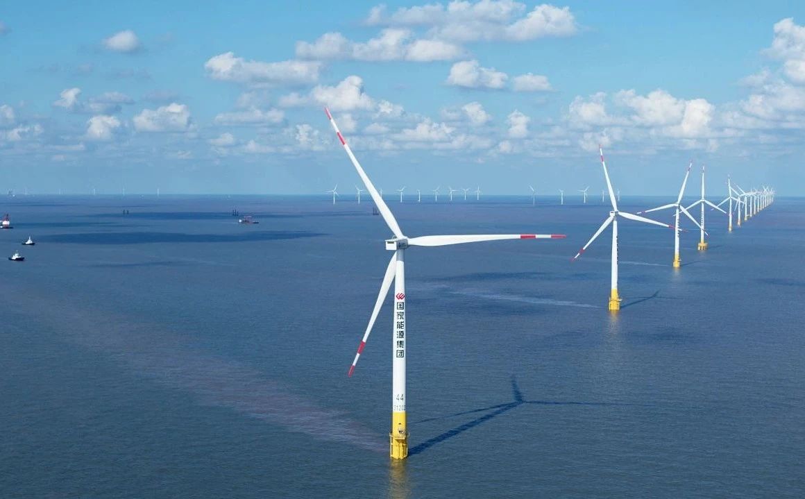 在東臺北條子泥海域和竹根沙海域,125臺風機隨風“起舞”。中國首個中外合資海上風電項目——國家能源集團和法國電力集團合資建設的國華東臺海上50萬千瓦風電項目,年均發(fā)電量約11億度,可滿足近200萬居民年用電需求。