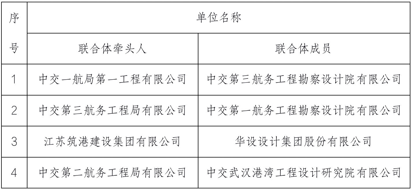根據(jù)《鹽城港大豐港區(qū)散貨堆場(chǎng)維大修工程EPC總承包項(xiàng)目DFGDCWX-EPC標(biāo)段招標(biāo)文件》評(píng)標(biāo)辦法,經(jīng)評(píng)標(biāo)委員會(huì)評(píng)審,以下單位入圍定標(biāo)候選人: