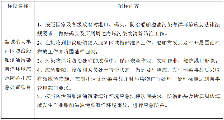 1、項目名稱:鹽城港大豐港區(qū)防治船舶溢油污染海洋環(huán)境應急防備和應急處置項目