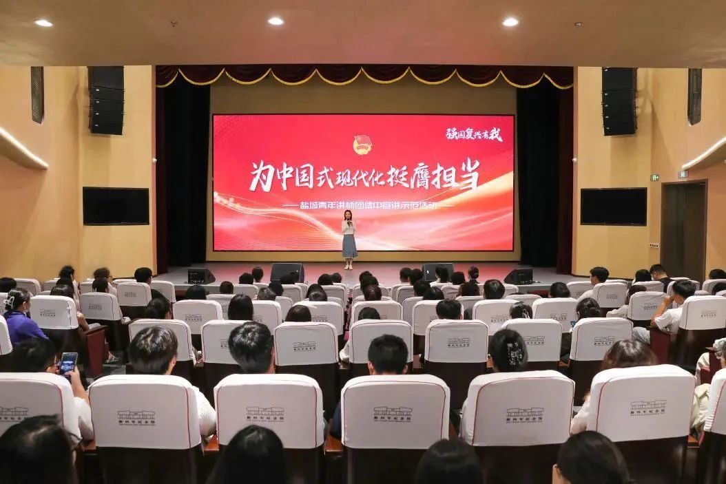 在線路第三站鐵軍劇場,5位來自不同領域的青年講師為青年學員帶來了一場內容豐富、形式多樣的精神盛宴。江蘇省金牌講解員陳風亮老師深情講述了“一塊石頭的故事”,以小見大,折射出新四軍帶領鹽阜人民修筑海堤、抵御海潮的感人事跡;建湖縣淮劇團青年演員夏詩雅老師分享了她的藝術成長歷程以及淮劇創新表演方式,引導青年在藝術熏陶中感悟紅色基因的深厚底蘊;青年志愿者馬量則結合自身志愿服務經歷,呼吁大家立足本職崗位,弘揚奉獻精神,積極服務社會。來自水務公司和鹽城機場的青年講師也結合自身崗位分別做了分享。