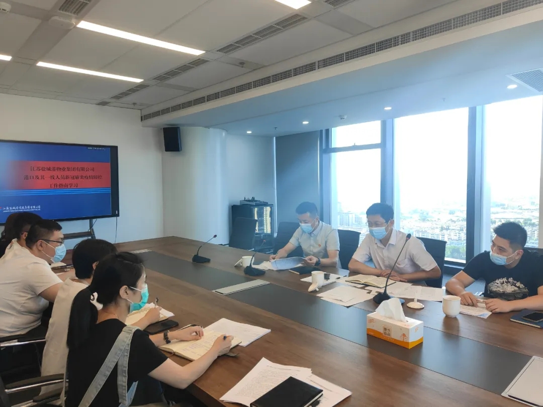 8月4日下午,物業(yè)集團(tuán)黨總支部副書記、副總經(jīng)理方海東組織本部全體職工及各物業(yè)點(diǎn)項(xiàng)目經(jīng)理學(xué)習(xí)《港口及其一線人員新冠肺炎疫情防控工作指南(第七版)》,物業(yè)集團(tuán)相關(guān)班子成員參加會(huì)議。