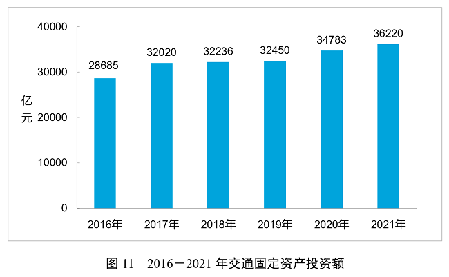 全年完成交通固定資產(chǎn)投資36220億元,比上年增長4.1%。