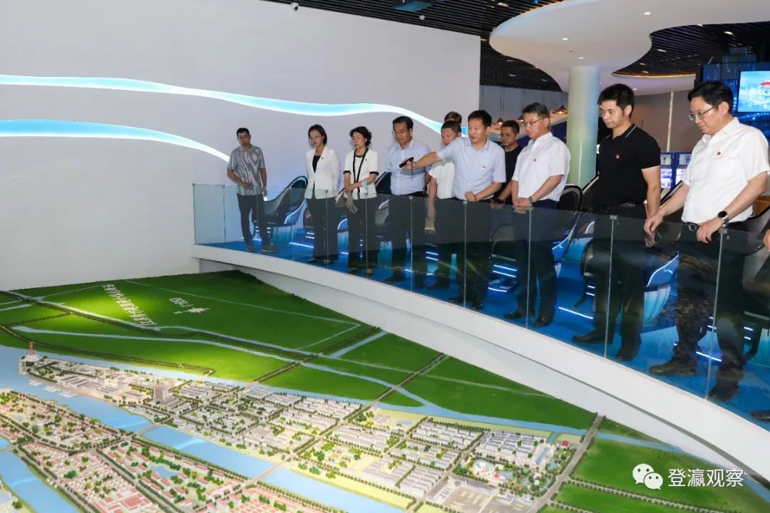 ▲周斌在黃沙港漁港小鎮(zhèn)察看規(guī)劃沙盤