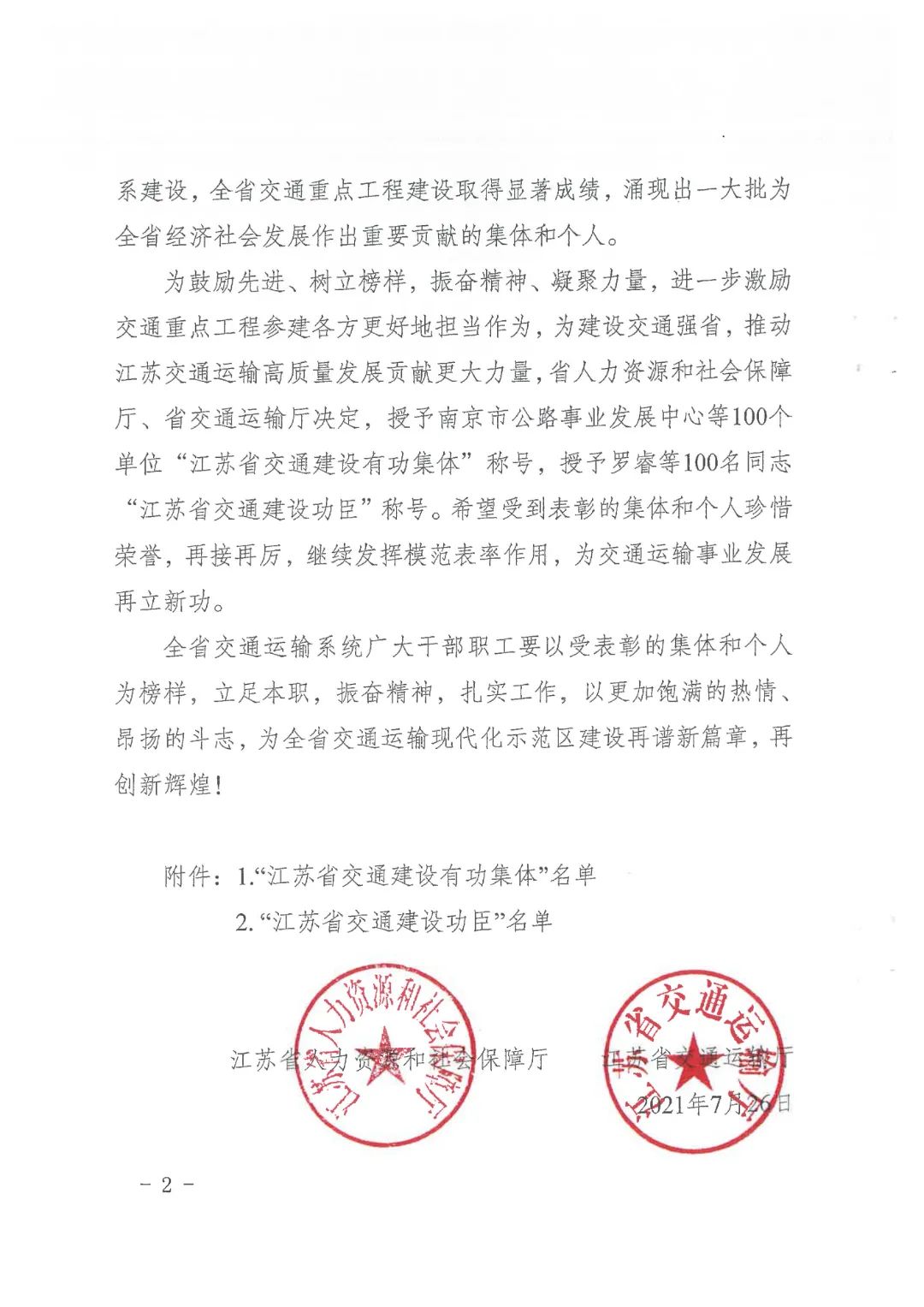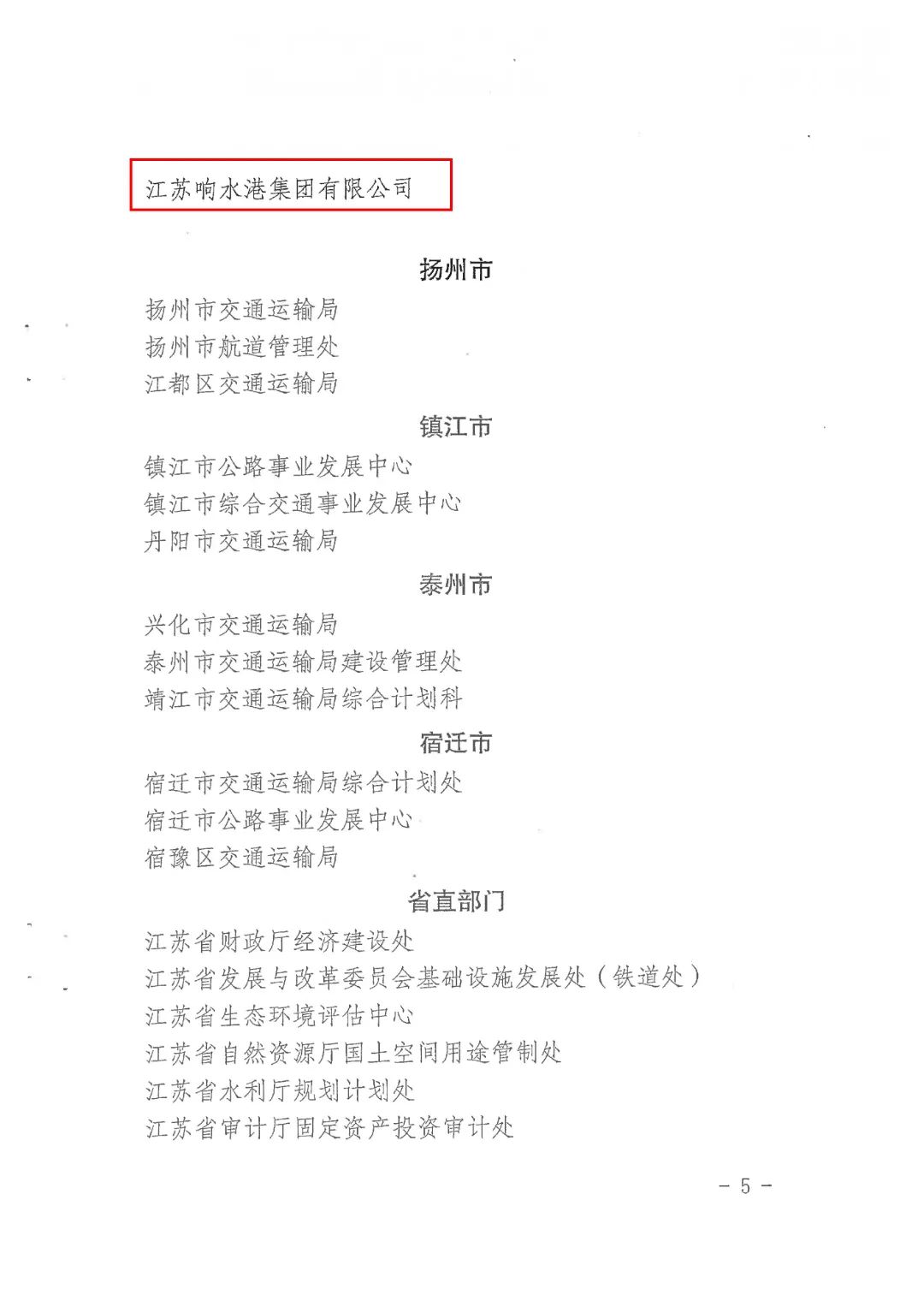 近日,省人力資源和社會保障廳、省交通運輸廳印發《關于表彰江蘇省交通建設功臣的決定》,集團下屬響水港集團有限公司榮獲“江蘇省交通建設有功集體”表彰。