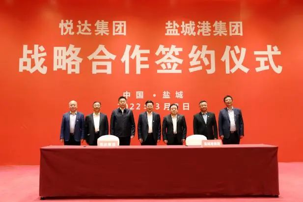 3月8日,悅達(dá)集團(tuán)與鹽城港集團(tuán)戰(zhàn)略合作框架協(xié)議簽約儀式在鹽舉行。悅達(dá)集團(tuán)黨委書記、董事長張乃文,集團(tuán)黨委書記、董事長、總經(jīng)理周正雄,悅達(dá)集團(tuán)黨委副書記楊玉晴,集團(tuán)黨委委員、紀(jì)委書記周旭東,集團(tuán)黨委委員、董事、副總經(jīng)理丁安廣出席活動(dòng)并鑒簽。悅達(dá)集團(tuán)黨委委員、常務(wù)副總經(jīng)理徐兆軍,集團(tuán)黨委委員、董事、副總經(jīng)理夏立新代表合作雙方上臺(tái)簽約。