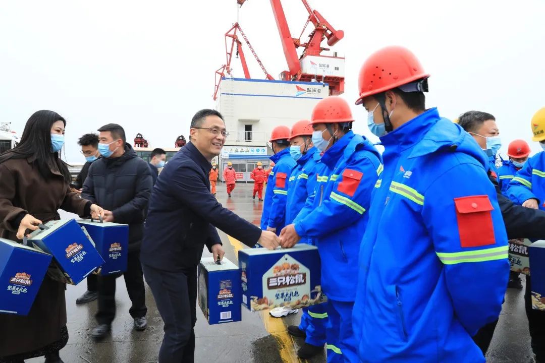 1月22日,大年初一,碼頭一線到處洋溢著節日喜慶氣氛。受集團黨委、董事會委托,當天上午,集團黨委副書記、董事、總經理陸帥率隊前往大豐港區看望慰問堅守在一線工作崗位的工作人員,代表集團黨委、董事會向他們致以新春的祝福和節日的問候。鹽城海關二級高級主辦李健,集團副總經理袁欣等參加。