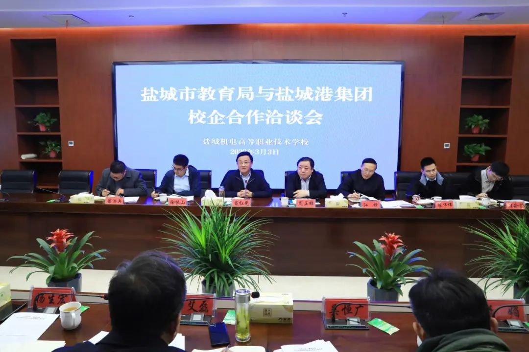 3月3日,鹽城市教育局、鹽城港集團校企合作洽談會圓滿舉行。市委教育工委書記、市教育局黨委書記、局長戴紅光,集團黨委書記、董事長周正雄出席會議。集團黨委委員、副總經理徐振山、梁洪兵,以及相關高職院校負責同志等參加。