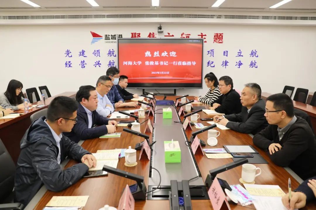 周正雄對(duì)張俊基一行的到訪表示歡迎,并對(duì)河海大學(xué)在鹽城港發(fā)展過程中給予的關(guān)心、關(guān)注和支持表示感謝,并介紹了鹽城港相關(guān)情況。他說,張俊基書記一行到訪,不僅是積極落實(shí)中央“大興調(diào)查研究之風(fēng)”的具體實(shí)踐,同時(shí)也為鹽城港實(shí)現(xiàn)更高質(zhì)量發(fā)展帶來了有力的理論支撐和智力支持。近年來,隨著江蘇沿海發(fā)展戰(zhàn)略上升為國(guó)家戰(zhàn)略,全省沿海基礎(chǔ)設(shè)施穩(wěn)步推進(jìn),立體交通初具雛形,為港口的發(fā)展打下了堅(jiān)實(shí)基礎(chǔ)。港口作為沿海發(fā)展的重要增長(zhǎng)極,市委、市政府審時(shí)度勢(shì),將全市海港和內(nèi)河港區(qū)融為一體,組建成立鹽城港集團(tuán),對(duì)沿海、內(nèi)河岸線資源實(shí)行一體化運(yùn)營(yíng),充分利用各港區(qū)的區(qū)位和自然條件優(yōu)勢(shì),形成海河聯(lián)運(yùn)一體化發(fā)展格局,進(jìn)一步實(shí)現(xiàn)港口資源使用效益的最大化。集團(tuán)成立以來,緊抓多重戰(zhàn)略疊加機(jī)遇,不斷整合優(yōu)化內(nèi)外部資源,全力以赴抓好生產(chǎn)經(jīng)營(yíng),在2021年首次躋身全國(guó)億噸大港行列,2022年位列全國(guó)40個(gè)億噸港口的第28位,貨物吞吐量增幅及集裝箱量增幅分別位列全國(guó)54個(gè)沿海港口的第一和第二位,進(jìn)一步打響了鹽城港品牌。