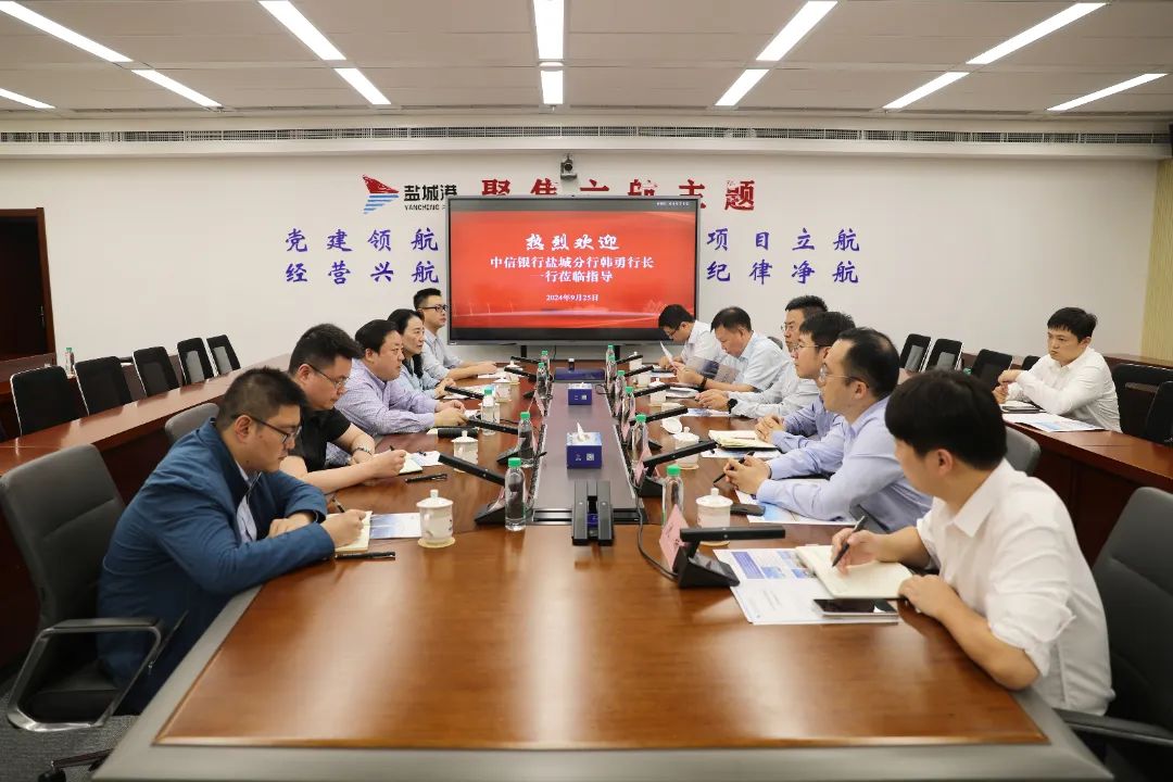 周正雄對韓勇一行的到來表示歡迎,對中信銀行鹽城分行在鹽城港發展過程中給予的關心和支持表示感謝,并介紹了鹽城港相關情況。他說,沿海發展是鹽城發展的重要增長極,港口發展是海洋經濟發展的重要組成部分。集團自成立以來,統籌抓好基礎設施建設、資產資源調優、生產經營各項工作,多項經營指標取得突破,在全國沿海港口中保持爭先進位。當前,集團積極策應“水運江蘇”建設,緊抓淮河入海水道改航道及鐵路支線開通等重大機遇,聚焦服務產業功能配套,加快航道、碼頭等10類能級提升項目建設,全力打造“公鐵河?!倍嗍铰撨\體系。同時,加快推進淮河流域布點,積極構建淮河沿線和黃河故道沿線港口“朋友圈”,形成“港口聯盟”,全力培育鹽城港未來的喂給港,為鹽城港邁入高質量發展“黃金期”奠定堅實基礎。希望中信銀行鹽城分行一如既往地關心支持鹽城港發展,在“港口+”業務、資本運營等方面為鹽城港提供更多支持,進一步找準合作的切入點,開發更多適合港口的金融產品,為鹽城港的發展提供強有力的金融支撐。