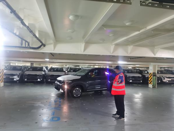 業務開展期間,工作人員密切配合,對每臺車輛進行固定和檢查,熟練地進行綁扎工作,確保車輛在運輸過程中不會發生絲毫移動,仔細查驗車輛的外觀和內部設備,不放過任何一個可能存在的問題,同時安排專人專崗緊盯作業流程,嚴格把關汽車裝船及加固作業,反復檢查每一個螺栓的緊固程度、每一根繩索的拉力大小,確保萬無一失,將高標準作業貫穿于卸車、驗車、收車、裝船、加固等各個環節。