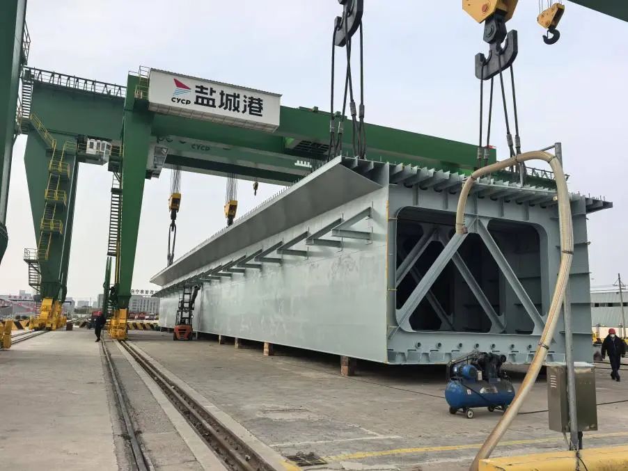 持續調優貨源結構,推動大宗原材料向半成品、產成品雙向轉變。光伏玻璃、水泥噸袋、特大件、電池、鉻鐵、化肥及鋼板等七種新貨種相繼亮相。其中,阜寧港區成特大件裝卸業務,單次吊裝最高噸位達500噸,成功刷新內河港口大件裝卸記錄。