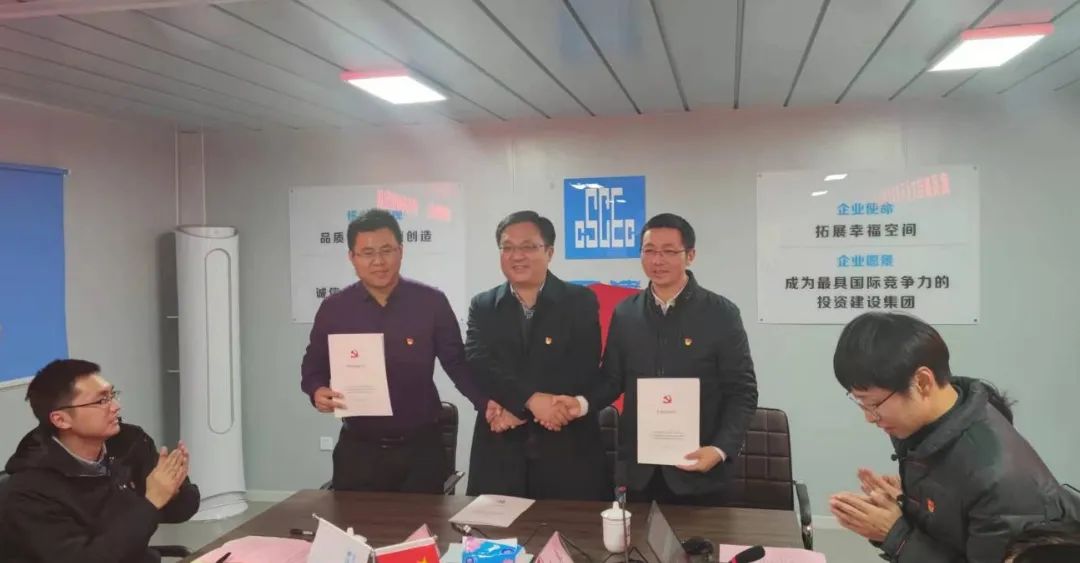 活動中,三方黨支部書記分別作交流發言,與會人員同上一堂精品黨課《修身律己永遠在路上》,并舉行了“聯建共建”簽約揭牌儀式。隨后,還開展了冬日送溫暖活動,對一線施工工人進行慰問。