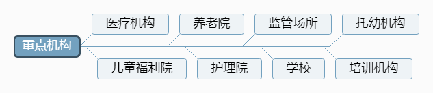 4.“重點機構”:新冠肺炎疫情期間,容易暴發聚集性疫情的機構,包括醫療機構、兒童福利院、養老院、護理院、監管場所、學校、托幼機構、培訓機構等。