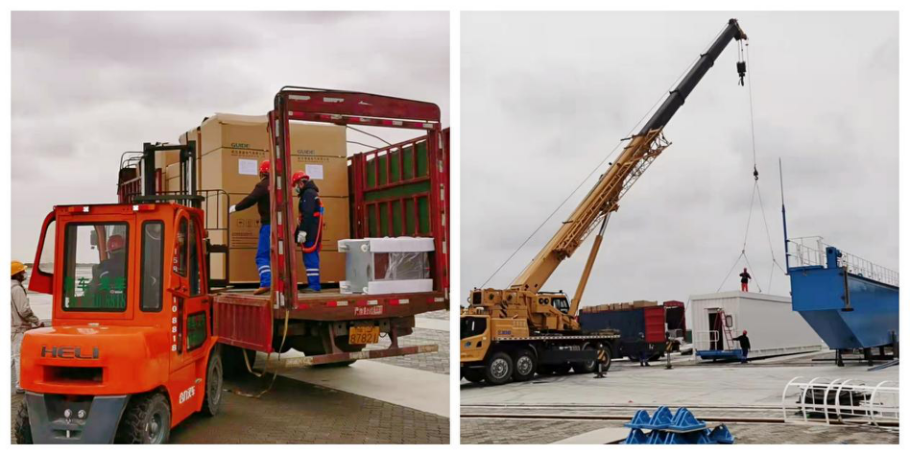 截至目前,重箱堆場、空箱堆場、熏蒸場地、港內堆場等基層、面層已全部完成,道路與堆場工程量已完成約98%,邊檢樓沉樁完成144根,進、出港閘口基礎與主體柱已完成4根,變電所、進出港閘口、查驗平臺及監(jiān)管倉庫、維修保養(yǎng)車間、生活污水處理站等附屬設施土建方面工程量已完成約70%,1臺GJQ型41t-40m軌道式集裝箱門式起重機主體已吊裝完畢,即將進入調試階段。