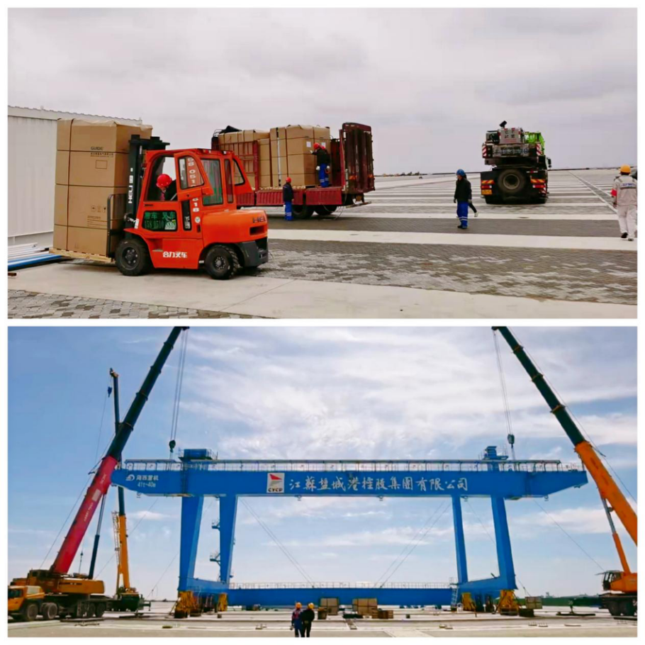 人勤春來早,處處耕耘忙。在鹽城港大豐港區(qū)糧食碼頭集裝箱堆場全自動化工程建設現(xiàn)場,一派熱火朝天的忙碌景象展現(xiàn)在眼前。大型運輸車、汽車吊等設備一字排開、整齊劃一,起重機主梁、支腿如塔林般巍然聳立、昂揚挺拔,作業(yè)人員和施工單位正緊鑼密鼓、爭分奪秒地趕搶工期。