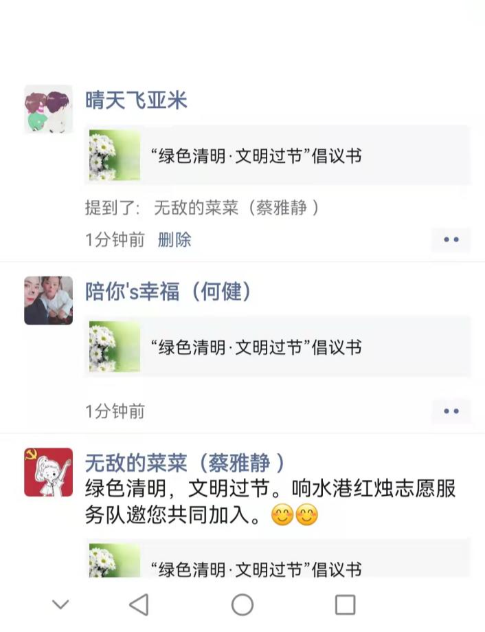 沒(méi)有一個(gè)冬天不可逾越,沒(méi)有一個(gè)春天不會(huì)到來(lái)。非常時(shí)期的特殊清明,堅(jiān)守,就是一份力量;平安,就是一份希望。響水港區(qū)青年志愿者與您同行,從現(xiàn)在做起、從自身做起、從點(diǎn)滴做起,做文明祭掃的踐行者、傳統(tǒng)文化的傳承者、告別陋習(xí)的先行者,為守護(hù)青山綠水,建設(shè)美麗港城作出自己應(yīng)有的貢獻(xiàn)。