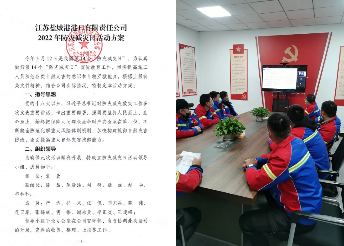 為做好全國(guó)第14個(gè)防災(zāi)減災(zāi)日活動(dòng),進(jìn)一步增強(qiáng)公司全體員工防災(zāi)減災(zāi)意識(shí)和應(yīng)急處置能力,鍛造一支聽(tīng)之能用、用之能戰(zhàn)、戰(zhàn)之必勝的防災(zāi)減災(zāi)應(yīng)急隊(duì)伍,保障公司安全生產(chǎn)形勢(shì)持續(xù)穩(wěn)定向好,鹽城港港口公司嚴(yán)格執(zhí)行集團(tuán)統(tǒng)一部署,結(jié)合自身情況,以“強(qiáng)化軟件硬件,做好防災(zāi)減災(zāi)”為主線,在公司范圍內(nèi)開(kāi)展防災(zāi)減災(zāi)主題活動(dòng)。