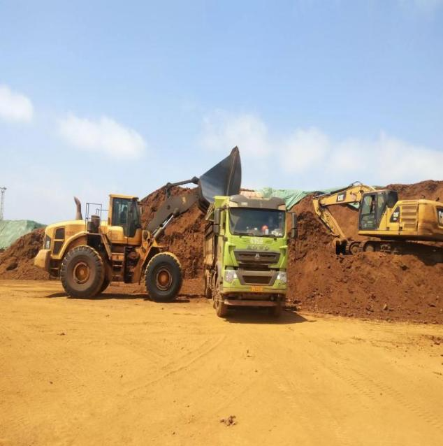 初夏時節,南鎳礦堆場內一派繁忙景象,一輛輛半掛車有條不紊的進出貨場,26475噸的鎳礦從二期碼頭進入堆場B2庫區堆存。勤勞的倉儲人正在搶抓時間進行作業,在他們的指引下,挖機在堆垛上方飛舞長臂打著堆,裝載機緊密配合著輔助,一切都是那么嫻熟,那么的自然。