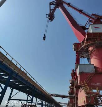 隨著一聲指令的下達,演練正式開始,糧食碼頭1#泊位“騰海明宇”輪作業過程中突然接上級通知,碼頭1小時后將突發強對流天氣,伴有雷電、大風、暴雨等緊急情況。現場調度立即啟動突發極端天氣機械設備防風錨定應急預案,門機停止作業、抓斗降至碼頭面、更換鉤頭、放下行走錨定,保障人員拉起門機防風拉索、安全巡查員對各處防風錨定情況進行再檢查、作業車輛就地停車并開啟雙閃、設備維護組人員全部保持待命搶修狀態。在場人員分工明確、各司其職、井然有序,僅用10分鐘,所有機械錨定任務全部完成,所有作業人員撤離到安全區域進行復盤點評,演練圓滿結束。