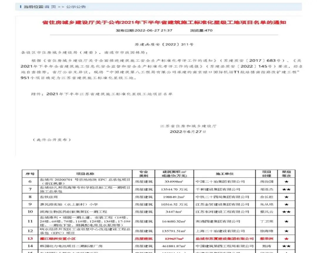 近日,鹽城港集團(tuán)灌江綠洲安置小區(qū)項(xiàng)目在榮獲“鹽城市建筑施工標(biāo)準(zhǔn)化示范工地”稱號(hào)后,再次榮獲“2021年下半年江蘇省建筑施工標(biāo)準(zhǔn)化星級(jí)工地”稱號(hào)。