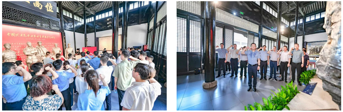 在講解員的引導(dǎo)與講解下,全體干部職工通過文物、史料、圖片等展覽,走進(jìn)戰(zhàn)火紛飛的抗日戰(zhàn)爭歲月,重溫劉少奇、陳毅等老一輩革命家率領(lǐng)新四軍將士堅持華中敵后浴血奮戰(zhàn)的艱苦斗爭歷程,感受到新四軍的金戈鐵馬、熱血雄魂,實(shí)地接受了一次深刻的黨史教育,實(shí)景實(shí)情感悟革命先輩們攻堅克難、甘于奉獻(xiàn)的大無畏革命精神。