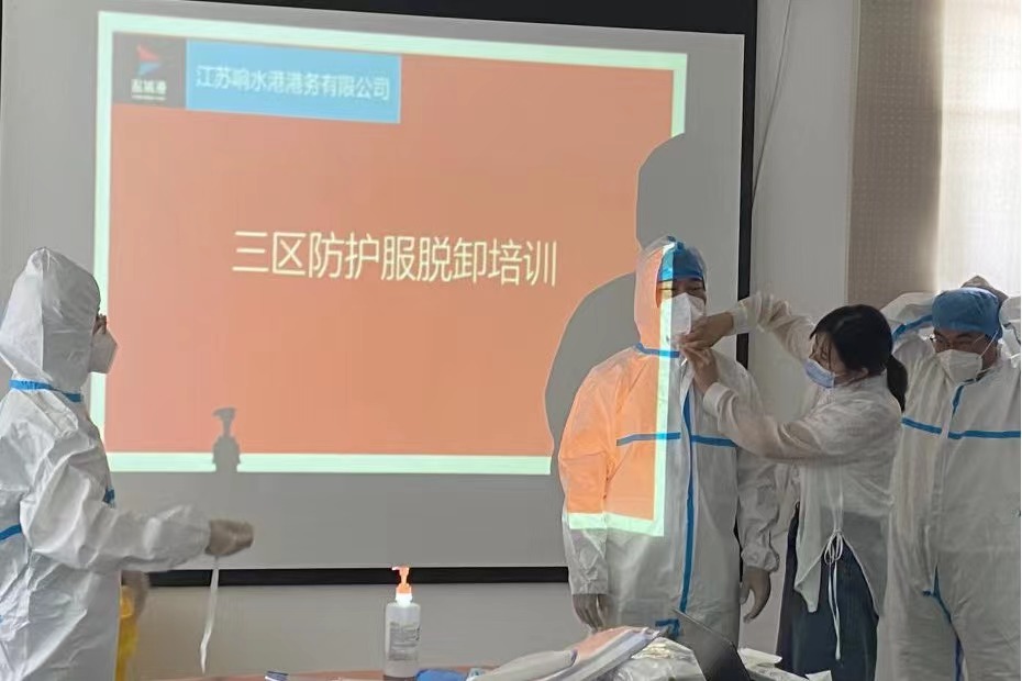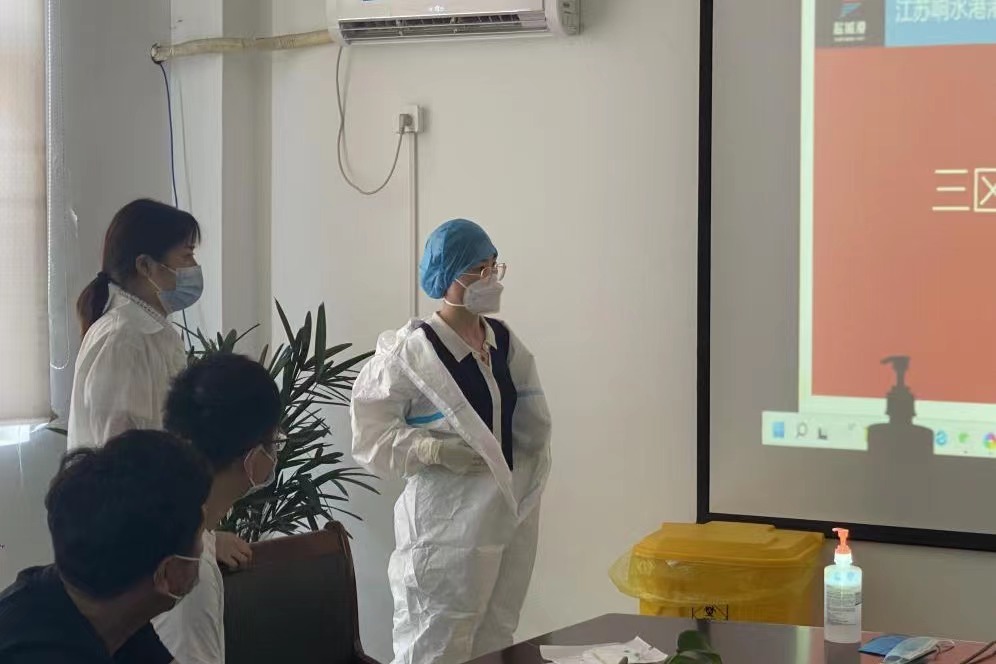 為堅決打好新型冠狀病毒疫情防控阻擊戰(zhàn),全面提高應對疫情的響應能力,熟悉應急處置具體流程,從嚴抓好疫情防控工作,近日,響水港區(qū)港務公司特邀響水縣港城醫(yī)院專職醫(yī)護人員,對港區(qū)作業(yè)人員進行疫情防控相關(guān)的三區(qū)防護服穿脫消殺培訓。