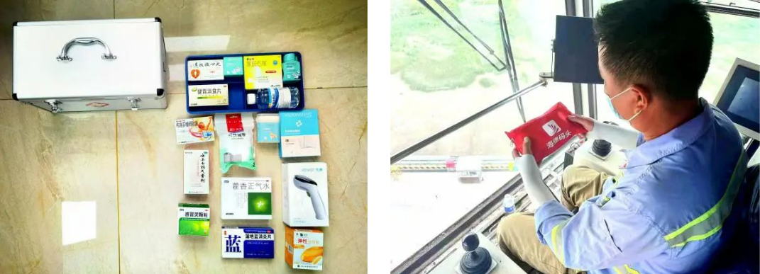 響水港區貼心地在門機操作區、碼頭休息區、辦公區都準備了應急藥箱。藥箱雖小,“五臟俱全”。內含體溫計、感冒沖劑、急救類常用藥品及醫用紗布、碘酊等常備創傷性醫療應急物品。點滴之處見真功,細微之中見真情。小小藥箱把對員工的關愛落實到實處,讓員工切身感受到了集團的呵護與關愛。