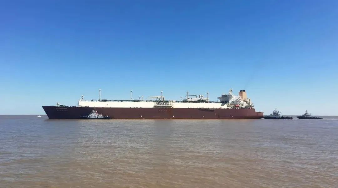 此次進港的“阿爾卡莎米亞”號LNG運輸船,屬于Q-Flex,為全球第二大LNG船船型。該船總長315.06米、型寬50米,總噸135423、凈噸41972、載重噸101956.5噸,裝載21.2萬立方米液化天然氣,可供650萬戶家庭1個月的生活用氣。