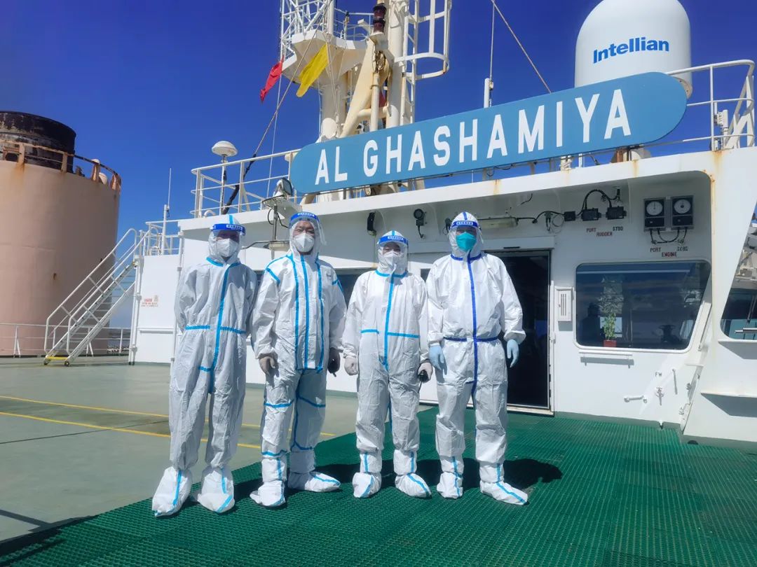 為了完成該輪來鹽城港的首次引航任務,積極服務“綠能港”建設,鹽城港引航人未雨綢繆,成立引航專班小組,積極參與航道設計、碼頭布置,提供引航建議。專班小組認真研究船舶操縱特性、港口水文和氣象條件,擬定拖輪協靠方案、制定船舶系泊計劃,在“阿爾卡莎米亞”來港之前,先后派出資深引航員前往武漢理工大學進行模擬器操縱和培訓,并赴南通洋口港登輪進行學習和交流。疫情期間登船引航,專班小組及時跟蹤船員健康狀況,對接口岸防疫小組,除了引航員“全副武裝”外,還做好應急預案工作,確保疫情防控工作安全有效?!鞍柨ㄉ讈啞陛喌捻樌坎?,再一次展現了引航人勇立潮頭,勇于擔當的意志品質。