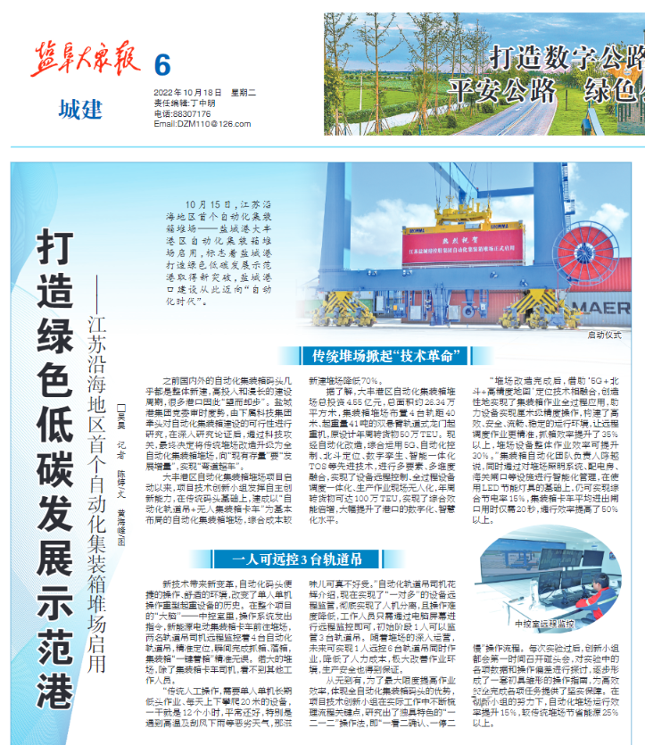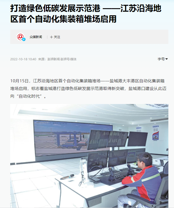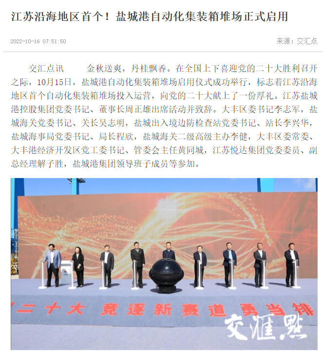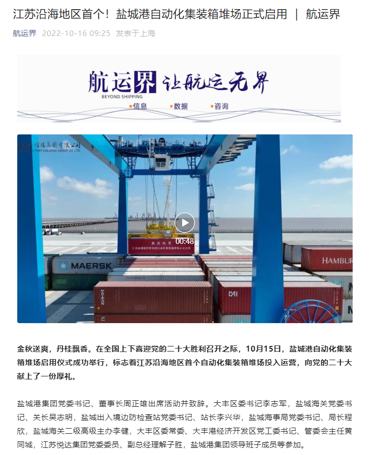 鹽城港大豐港區自動化集裝箱堆場正式啟用引發媒體廣泛關注