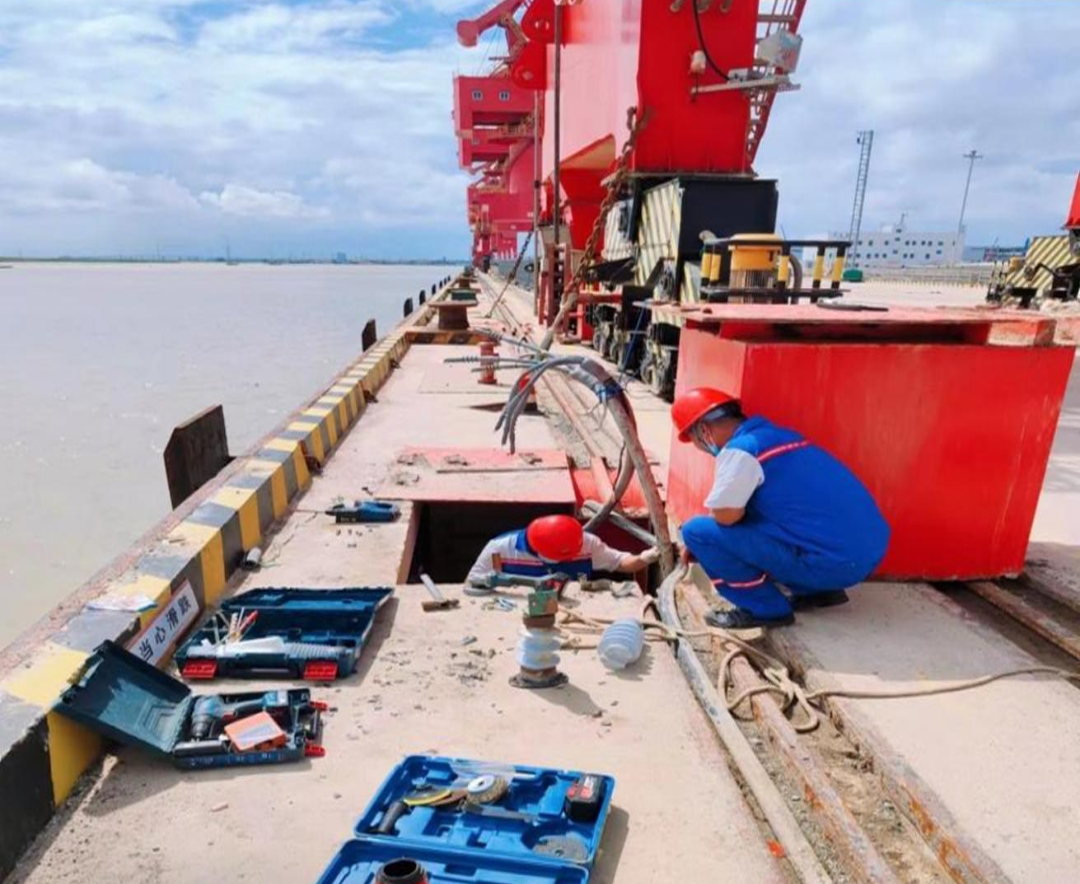 碼頭設(shè)備使用下沉式接電箱,海水濕氣大腐蝕性極強(qiáng),設(shè)備組定期對(duì)電箱高壓進(jìn)線終端進(jìn)行檢查,對(duì)有問題的立即整改。保障碼頭正常作業(yè),為完成全年目標(biāo)任務(wù)奠定堅(jiān)實(shí)基礎(chǔ)。