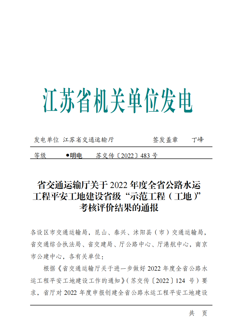 近日,省交通運(yùn)輸廳發(fā)布2022年度全省公路水運(yùn)工程平安工地建設(shè)省級(jí)“示范工程(工地)”考核評(píng)價(jià)結(jié)果,灌河口5萬(wàn)噸級(jí)航道整治工程2個(gè)疏浚標(biāo)段獲評(píng)2022年度江蘇省公路水運(yùn)工程平安工地建設(shè)省級(jí)“示范工地”。
