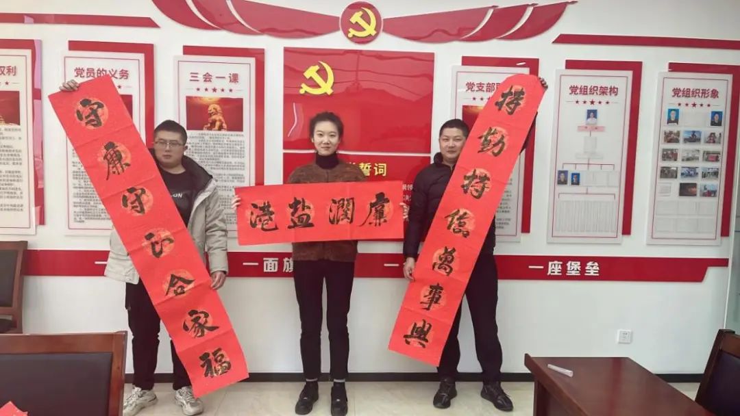 寫春聯送祝福,濃濃墨香迎新春,為弘揚傳統文化,涵養廉潔新風,營造節日氛圍,近日,響水港區開展“書廉政春聯 揚正氣清風”活動。