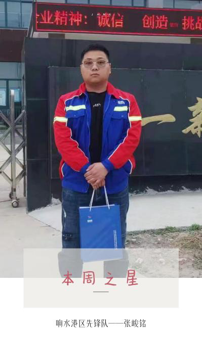 響水港區先鋒隊張峻銘作為一名攬貨人員,深入學習集團方針,積極參加新時代“南征北戰闖市場”百日攻堅活動,并在活動中取得優異的成績。在活動中,他慢慢摸索,從不了解如何展開工作,到熟練攬貨這個過程,付出了很大的努力,積累了寶貴的經驗,在活動中,他總能想客戶之所想,急客戶之所需,排客戶之所憂,贏得客戶們的一致好評。他的座右銘是“學問是一切活力的源泉”,并將這一理念深化到工作中,不斷提高自己的業務能力,為港口的發展貢獻自己的一點綿薄之力。截至目前,已實地拜訪36家,簽訂意向協議16份,正式協議11份,實際走量0.5萬噸。
