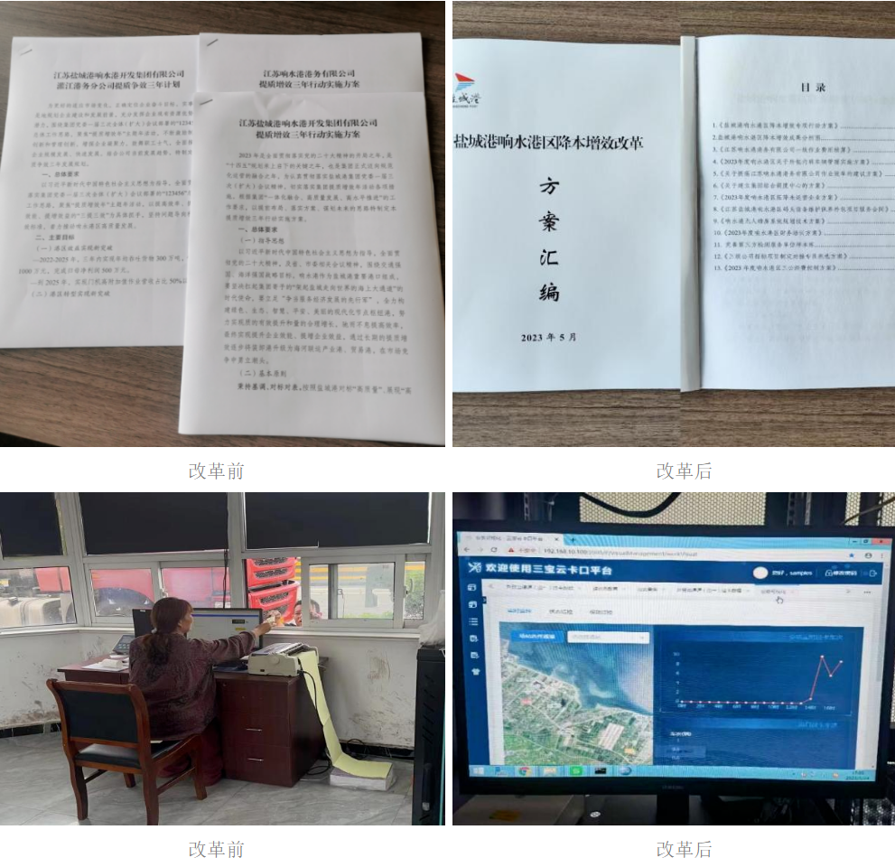 “降本增效”不僅是此次改革期間的重點(diǎn)工作,也是響水港區(qū)以及集團(tuán)全年度的重點(diǎn)工作。通過深入一線調(diào)研,集團(tuán)戰(zhàn)略規(guī)劃部在充分吸收采納集團(tuán)各部門意見的基礎(chǔ)上,圍繞關(guān)鍵環(huán)節(jié)深挖降本節(jié)支潛在點(diǎn),形成《鹽城港響水港區(qū)降本增效專項(xiàng)行動(dòng)方案匯編》,通過11項(xiàng)有效措施全力推進(jìn)響水港區(qū)降本增效工作。通過優(yōu)化作業(yè)流程,完善勞務(wù)外包模式,預(yù)計(jì)實(shí)現(xiàn)2023年底較2022年單噸一線作業(yè)成本下降5%,節(jié)省約240萬維保成本;完成無人磅房試點(diǎn)改造,預(yù)計(jì)實(shí)現(xiàn)年約42萬元人工成本的節(jié)約;完善第三方檢測服務(wù)樣本庫,實(shí)現(xiàn)項(xiàng)目檢測成本5%-10%的降低;推進(jìn)設(shè)立招標(biāo)專員,實(shí)現(xiàn)招標(biāo)(自主實(shí)施項(xiàng)目)審批流程節(jié)約8個(gè)工作日,效率提升33%;制定三公經(jīng)費(fèi)控制方案,預(yù)計(jì)年底實(shí)際費(fèi)用支出降幅較2022年達(dá)到10%。
