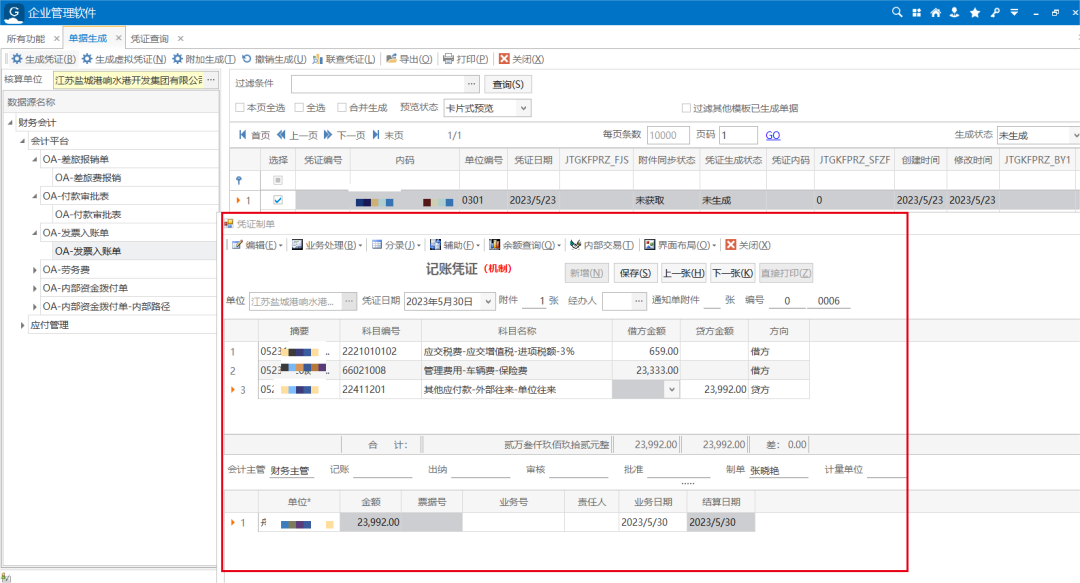 據(jù)介紹,通過集團(tuán)OA系統(tǒng)與浪潮系統(tǒng)進(jìn)行對(duì)接開發(fā),差旅費(fèi)、發(fā)票入賬、付款審批、內(nèi)部資金撥付等5類單據(jù)實(shí)現(xiàn)了憑證自動(dòng)生成,可覆蓋響水港業(yè)務(wù)30%的憑證數(shù)量。自動(dòng)化憑證不僅有效減少了手工憑證工作量,提高了財(cái)務(wù)人員工作效率,同時(shí)很大程度避免了人工錄入錯(cuò)誤的出現(xiàn),進(jìn)一步提升了憑證信息的準(zhǔn)確性。