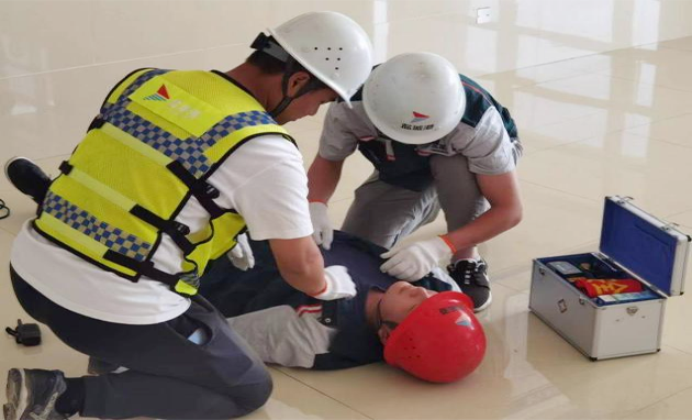 理論培訓結束后,各港區(qū)培訓人員在建湖港區(qū)大樓觀摩學習了觸電傷害安全事故應急演練。