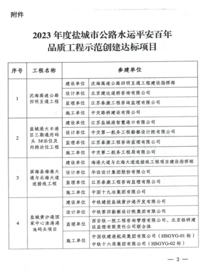 近日,鹽城市交通運輸局發布2023年度鹽城市公路水運平安百年品質工程創建示范達標項目的通知,大豐港區通用碼頭3#泊位項目成功當選。