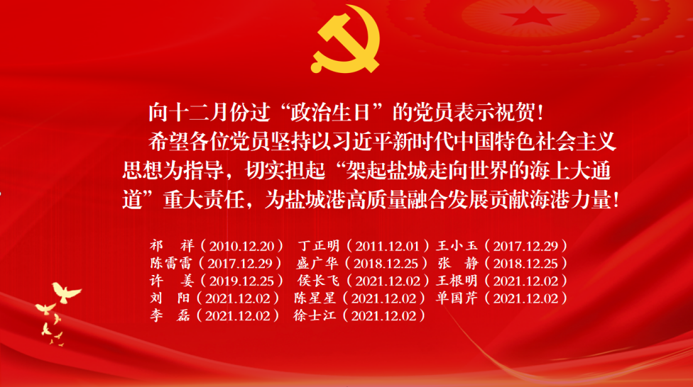 一個承諾,一顆初心,一生信仰,我心向黨,初心永摯。射陽港區(qū)全體黨員干部將永葆共產(chǎn)黨員的政治本色,堅定信仰鑄忠誠,立足崗位創(chuàng)新功。在新的一年里。射陽港區(qū)黨總支也將用活“政治生日”形式,與支部書記上黨課、實境教育相結(jié)合,讓全體干部職工感受到集團黨委、港區(qū)黨組織的溫暖關懷。