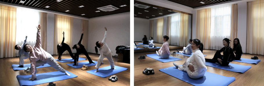 大家時(shí)而曲腿、時(shí)而展臂