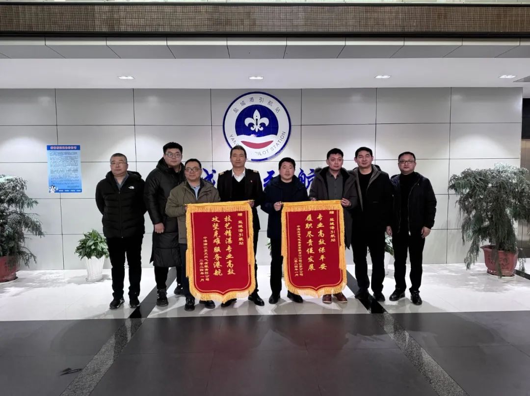 隨著冬季能源需求高峰的臨近,鹽城“綠能港”作為重要的能源樞紐,承擔(dān)著保障區(qū)域能源供應(yīng)穩(wěn)定的重要使命。在這一關(guān)鍵時刻,中海油江蘇天然氣有限責(zé)任公司、中海石油氣電集團有限責(zé)任公司、鹽城中能國際船務(wù)有限公司一行對鹽城港引航站在冬季能源保供保暢工作中所提供的專業(yè)服務(wù)和大力支持表示衷心感謝,并贈送了“攻堅克難服務(wù)港航 技藝精湛專業(yè)高效”“履職盡責(zé)促發(fā)展 專業(yè)高效保平安”兩面錦旗。鹽城港引航站負責(zé)人與到訪客人進行了座談交流。