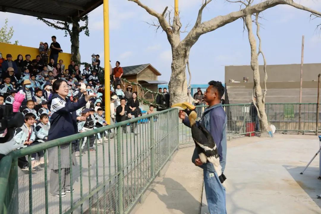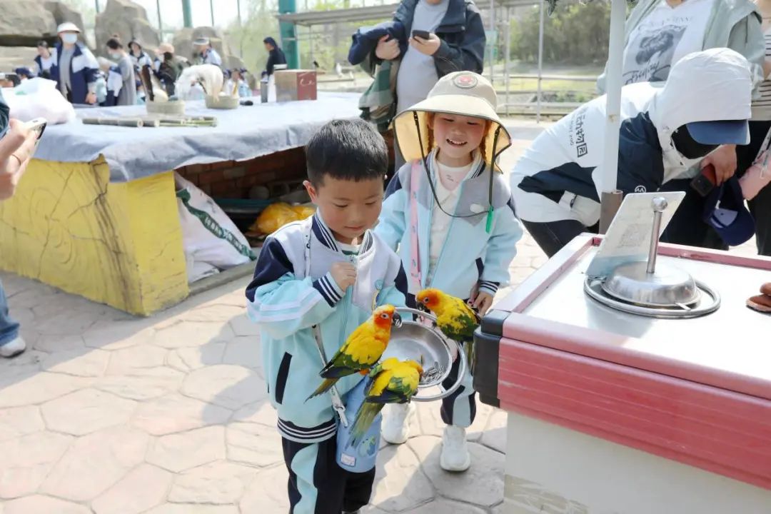 同學們與鳥兒進行親密互動,在工作人員的指導(dǎo)下給鳥兒們喂食,引得孩子們陣陣歡笑,人與自然和諧共生的畫面充分彰顯。