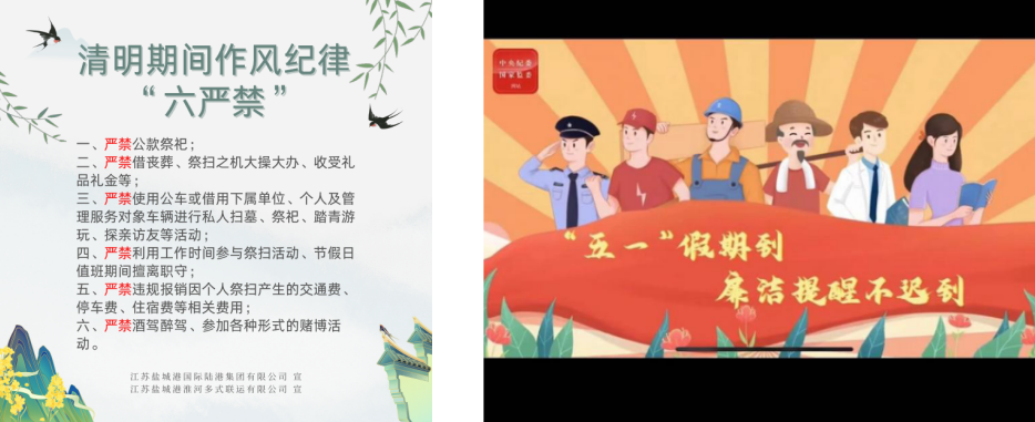 微信提醒送廉。在節假日前將嚴禁公車私用、嚴禁大操大辦、嚴禁收受禮品禮金等紀律要求設計制作成《節日期間作風紀律“六嚴禁”》海報,利用手機微信等平臺,發布中紀委節前廉潔提醒動畫,同時以短信形式為干部職工送上廉潔過節溫馨提示。一張海報、一個動畫、一條短信猶如一縷清風,通過“潤物無聲”的關懷與警醒,營造了風清氣正的節日氛圍。