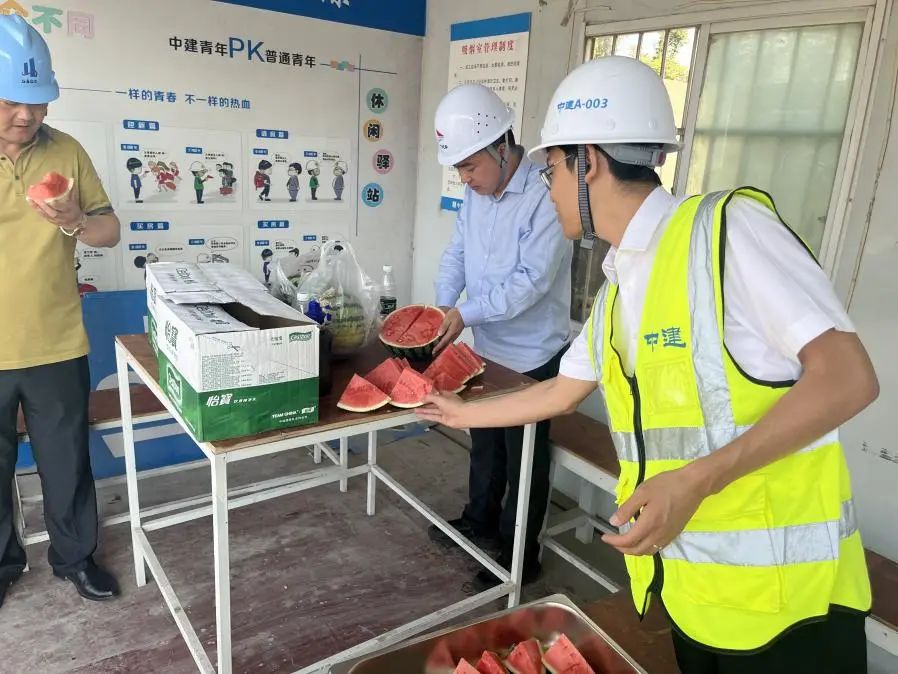入夏以來,氣溫不斷飆升,為確保一線職工能平安度夏,公司安排專人將西瓜、礦泉水等防暑降溫物品送到碼頭一線、項目施工現場,并向一線職工普及防暑降溫基本知識。公司也將根據天氣情況,持續發放防暑降溫物資,安排食堂熬煮綠豆水、酸梅湯等,讓“暖心”成為盛夏最清涼的主旋律。