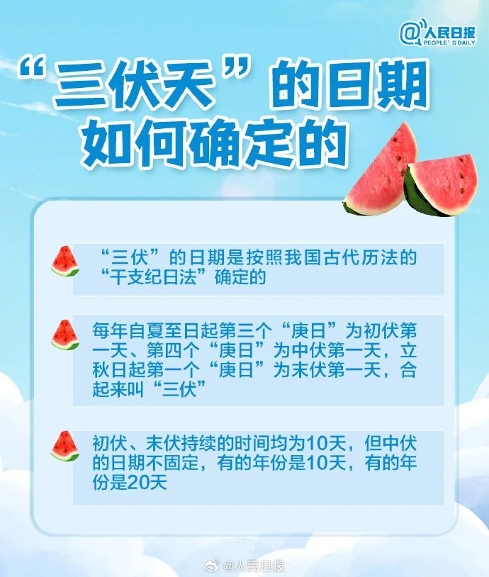 “三伏”大約在每年7月中旬到8月中下旬