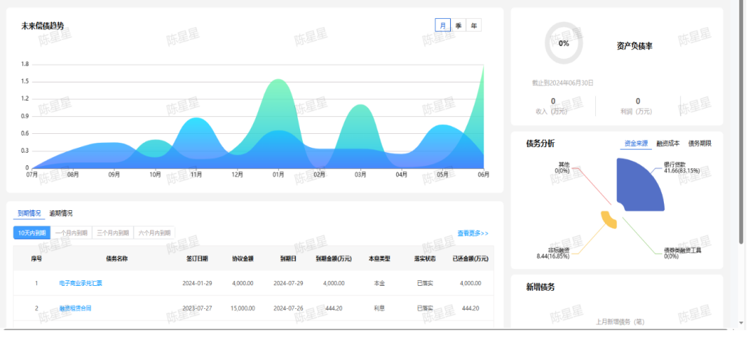 為實(shí)現(xiàn)財(cái)務(wù)標(biāo)準(zhǔn)化,每一筆融資發(fā)生后,第一時(shí)間將貸款的所有數(shù)據(jù)更新至系統(tǒng),實(shí)現(xiàn)每一筆還款無(wú)遺漏,保證資金還款的安全性。同時(shí),系統(tǒng)可生成債務(wù)結(jié)構(gòu),通過(guò)直觀的餅狀圖顯示,了解港區(qū)的債務(wù)情況,及時(shí)作出合理提款計(jì)劃,調(diào)優(yōu)融資結(jié)構(gòu)。