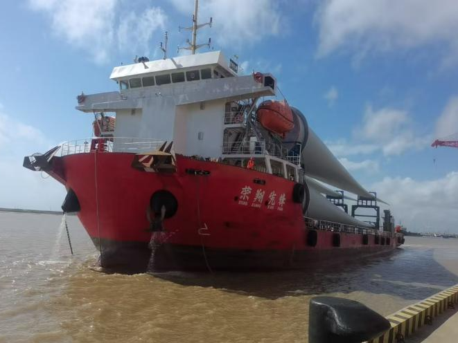 “海韻8”、“中捷安瑞”、“鴻德吉祥”等一條條運載風電葉片船舶緩緩出港?!笆弧逼陂g,“王小玉班組”、“盛廣華團隊”超前安排部署,根據海上項目建設需求迫切度,結合“射陽港區場地標準化管理辦法”,制定詳細的風電葉片堆存、轉運、裝卸計劃,安全、高效、有序保障了廣西欽州6#項目、廣西防城港二期項目和山東乳山U2-1場址海上風電項目建設需求。節日期間,裝卸風電設備8套,吞吐量同比增長17%。